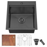 COMLLEN 17x19 Inch Black Drop in Bar Sink, 304 Stainless Steel Utility Kitchen Workstation,Gunmetal 9 Inch Deep Wet Bar Sink, RV Laundry Prep Kitchen Sinks with Dish Grid & Drain & Cutting Board