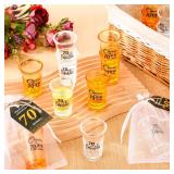 50 Sets Birthday Party Favors for Guests Souvenir Short Glasses Cheers to 70 Years Acrylic Clear Shot Glasses Thank You Tags with Organza Bags Twine for Anniversary Wedding Shower