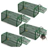 4 Pcs Humane Rat Trap Chipmunk Squirrel Cage Trap 4.33 x 4.33 x 9.06 Inches Foldable Rodent for Small Live Animal Voles Hamsters Catch and Release for Kitchen Yard Garage (Green)