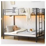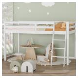 VINGLI Full Size Junior Low Loft Bed with Stairs, White Wood Bunk Bed Frame, No Box Spring Required, White