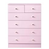 UBesGoo 6 Drawer Wood Dresser for Bedroom, Chest of Drawers, Storage Organization Unit for Clothing, Pink