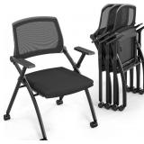 VINGLI 4 PACK Stackable Folding Conference Chair 350Ibs with Wheels Padded Seat