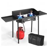 ROVSUN 2-Burner 150000 BTU Windproof Camping Propane Stove with Side Shelves & Bag