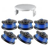 AC14RL3A String Spool Compatible with Ryobi 18v,24v,40v Cordless Trimmers and AC14HCA Cover Cap ,Replacement Ryobi One Plus+ Refills Weed Wacker Auto-Feed Twist Line 11ft 0.065" (6 Spools, 1 Cap)
