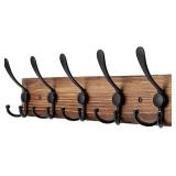 Coat Rack Wall Mount Wooden Hat Rack for Wall Hooks Pine Real Wood Plank 16.9" Brown Coat Hanger with 5 Triple Hooks for Hanging Coat Hat Jacket