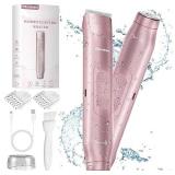 Bikini Trimmer for Women - 2 in 1 Electric Razors for Women - Dual Head Electric Shaver - IPX7 Waterproof Wet & Dry Use Body Hair Trimmer and Facial Hair Remover for Bikini Underarm Leg Arm