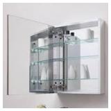 .A staple in any master bath or powder room, this 24 in. W x 30 in. H Frameless Bathroom Medicine Cabinet has a beveled mirror door for multi-faceted styling. Interior adjustable glass shelves hold all your toiletries and bath items, placing them within easy reach. A rust-free aluminum construction with mirror back offers durability and ensures years of use.