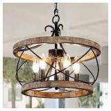 Bella Depot Farmhouse 5-Light Weathered Wood Drum Solid Wood Caged Chandelier with Metal Accents