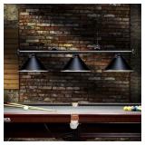 Includes pull chain, frosted glass shades, and downrod