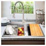 AKDY Handmade All-in-One Topmount Stainless Steel 33 in. x 22 in. Single Bowl Kitchen Sink w/ Spring Neck Faucet, Accessory