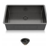 The LORDEAR stainless steel kitchen sink features a sleek modern design with easy-to-clean rounded corners. Made with heavy-duty TRU16-Gauge stainless steel for long-lasting durability with great resistance to corrosion, dents, and damage. Undermount sink installation creates a clean transition from sink to countertop and simplifies cleanup by letting you wipe water and crumbs right into the sink. Rubber sound dampening pads help absorb noise and vibration. Smooth gunmetal black finish and rounded corners make this stainless steel sink easy to keep clean, with channel grooves for easy draining.