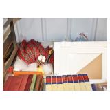 Furniture: 21” Cordless Snow Blower, (4) Outdoor Patio Chairs, Painted 2-Door Cabinet, Primitive 1-Door 3-Shelf Standing Cabinet, Drop-Leaf Table, Roll-Top Desk, Painted Corner China Cabinet, Singer Sewing Machine on Table, Large Amount of Various Shelves, Chairs, and Stands, and Other