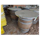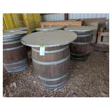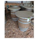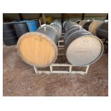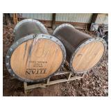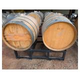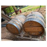 (2) Oak Wine Barrels on Metal Storage Rack |