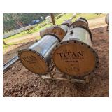 (2) Titan Hybrid Stainless Steel Barrels with French Oak Heads on Burgundy Rack |