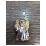 Sterling Silver Angel Pendant with Gold Tone Wings |
