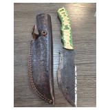 Custom Knife with Etched Blade and Leather Sheath |