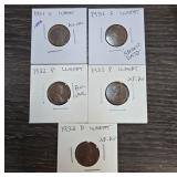 Five Wheat Pennies, 1931-1933 |