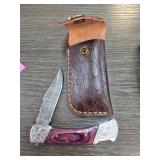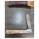 Damascus Steel Folding Knife with Sheath |