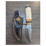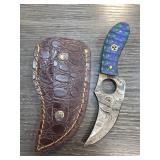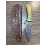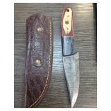 Handcrafted Knife with Damascus Blade and Sheath |