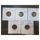 Five Wheat Pennies in Holders |