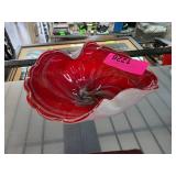 Red Swirled Glass Bowl With Fluted Edges |