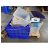 (1) small pallet containing empty plastic storage containers