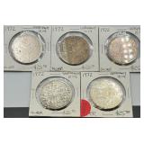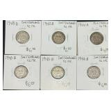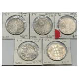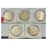 This exceptional premium numismatic auction represents a comprehensive collection of American and international coinage, rare historical coins, certified specimens, early American rarities, and specialized numismatic holdings spanning from the early nineteenth century through modern times with remarkable depth across multiple categories and emphasis on quality, rarity, and investment appeal. The American coinage foundation features an outstanding early American section including 1825 Capped Bust silver dime, 1834 Capped Bust dime, 1840 Braided hair large cent Liberty head, 1858 Flying eagle cent large letters variety, 1853 Seated Liberty half dime, 1857 Seated Liberty dime, 1853 Seated Liberty quarter dollar arrows and rays variety, 1860-S Seated Liberty half dollar, 1865 three-cent piece, 1864 United States two-cent piece, 1865 United States two-cent piece, and 1867-1871 two-cent piece examples demonstrating substantial early American representation. The two-cent piece collection shows particular depth with multiple dated examples. The nickel section includes 1883 Liberty head V nickel and 1912-D Liberty V nickel demonstrating key date availability. The Morgan silver dollar section features 1885-O and 1886 examples representing the late production era. The peace dollar collection includes 1922 peace dollar colorized silver coin with lady Liberty and bald eagle design plus 1922 peace dollar standard silver coin. The walking liberty half dollar collection demonstrates substantial breadth spanning 1916, 1916-D, 1917 obverse D, 1918-S, 1920-D, 1923-S, and 1927-S examples providing comprehensive date representation. The mercury dime section features 1931-D and 1931-S specimens. The barber half dollar collection includes 1898, 1901, 1902, 1906-D, 1907-O, 1908-O, 1909-O, and 1913-S examples spanning multiple dates and mint marks. Certified coins showcase premium quality with 1953-S Franklin half dollar NGC MS63, 2012 American Silver Eagle PCGS MS70 San Francisco, and 2019-S Roosevelt dime silver proof PCGS PR70DCAM limited edition first day of issue. Commemorative and special coins include 1893 Columbian half dollar, 1963 US Mint proof set, Iwo Jima historic collection commemorative World War II coin and stamp set, plus 2001 9/11 America unites commemorative coin. Presidential and mint collections feature Kennedy Mint obsolete collection, Presidential collection presentation folder, Lincoln memorial cents collection, and US 1964 proof set in Kennedy Mint portfolio. Lincoln wheat cent examples include US 1909 VDB, 1910-S, 1911-S, 1912-S, 1913-S, poor man's 1955/5 double die variant, plus fourteen-pound bag of assorted cents and Lincoln memorial cent rolls. The international coinage section demonstrates exceptional breadth spanning Canada (Victorian/Edward VII silver five-cent coins, Canadian five-cent coins 1939-1948, Canada 5-cent maple leaf variety 1947, Canada victory nickels 1944-1945, Canadian silver dollars including 1939 royal visit commemorative and 1939 one dollar coin), United Kingdom (extensive silver three-pence pieces spanning 1904, 1909, 1917, 1919, 1920 King Edward VII and King George V examples, silver one florin pieces 1912, 1919, 1920, 1922, 1933, 1937, 1938, 1941, 1942, 1943, 1944, 1945 George V and George VI examples, silver half crowns 1917, 1920, 1928, 1934, 1935, 1936, 1939, 1940, 1941, 1942, 1945 multiple George V and George VI examples), Germany (multiple states and eras including 1875-D one mark, 1876-A Prussia two mark, 1876-B one mark type 1, 1911-A one mark, 1935-A five reichsmark, 1936-A five reichsmark Paul von Hindenburg, 1937-E two reichsmark), Switzerland (ten examples spanning 1932-B, 1933, and 1948-B five francs William Tell plus 1/2 franc silver coins lot), Mexico (1865 Maximilian gold 1/2 escudo, 1947 five pesos Cuauhtemoc, 1948 five pesos Cuauhtemoc), Peru (1907 silver 1/5 sol), Cuba (1916 silver twenty centavos), Panama (1934 one balboa silver), Venezuela (1924 five bolivares, 1929 two bolivares), Ecuador (1944 five sucres), Netherlands (1930 two and one-half gulden Queen Wilhelmina), Iran (1940s ten rials banknote), and numerous additional countries. The certified collections include 2001 US Mint silver proof set Kennedy, 1963 US Mint proof set, 2000 American silver eagle one oz .999 fine silver dollar, 2001 one oz .999 silver 9/11 commemorative, West Germany 1972 Olympic ten deutsche mark silver coins collection, and premium proof and uncirculated sets. Bulk and collection lots include sixty-pound bag of assorted cents, fourteen-pound Lincoln memorial cent rolls, Canadian silver five-cent coins collection, and specialized numismatic groupings. With 402 individual lots representing comprehensive American numismatics spanning early American rarities, walking liberty halves, peace dollars, certified specimens, Lincoln wheat cents, international coinage from 30+ countries spanning multiple centuries, proof and mint sets, commemorative coins, and specialized holdings, this premium auction appeals to serious Morgan and peace dollar collectors, early American coin specialists, walking liberty devotees, certified coin investors, international numismatists, Lincoln cent collectors, proof set enthusiasts, Canadian numismatic specialists, world coinage collectors, and advanced numismatists pursuing complete collections from established sources with emphasis on quality and provenance. |