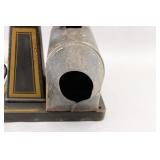 Go To www.bhdauctions.com To Bid Catalog: 1 Royal Type A100 Coffee Grinder Dated 1910 2 Kellogg Oak Wall Mount Hand Crank Phone 3 Singer Feather Weight Sewing Machine w Case 4 Cast Iron Horse Drawn Ladder Fire Truck w 2 Figures 5 Seeburg Wall O Matic Music System 6 Hull Ware Little Red Riding Hood Cookie Jar 7 GTO 500 Promo Car w OB 8 Penny Vehicles and Buildings 9 Composition Easter Rabbit 10 Halloween Snowman and Frankenstein Pen 11 Cast Iron Ice Cart 12 3 Vintage Wind Up Toys 13 Vintage Spaceship Bank 14 Children's Toys and Figural Bottle Topper 15 L.E. Smith "Bittersweet" swung vase 16 Murano glass pheasant sculptures are handcrafted in Italy, featuring a distinctive mid-century modern style with elongated forms. 17 Children's Books 18 Dr. Seuss Books 19 Fortune Teller and Dream Books 20 Box of Vintage Keys 21 Box of Vintage Glasses 22 Drafting Set and Grooming Kit 23 Christmas Ornaments 24 Christmas Reindeer 25 Christmas Putz Houses 26 Christmas Candles 27 Easter Decorations 28 Christmas Items 29 Christmas Carolers 30 Vintage Pens and Mechanical Pencils 31 Drafting Set 32 Miniature Oil Lamps 33 3 Oil Lamps 34 Binder of Assorted Stickers 35 Vintage Mechanical Oilers 36 Vintage Mechanical Oilers 37 Aladdin Nu Type Model B Oil Lamp 38 Roseville Pottery vase in the "Magnolia" pattern, produced circa 1943. 39 Stoneware Embossed Pitcher 40 3 Antique Pharmaceutical Bottles 41 No. 1 1/2 Cast Iron Grinder 42 Browns Mule RJR TOB Co. Cutter 43 2 Ladles 44 Pair of Glass Shoes 45 Cast Iron Fire Truck 46 Vintage GE Electric Clock 47 Assorted Pez 48 Vito Reso-Tone Clarinet 49 Star Wars Figures 50 Assorted Toy Vehicles 51 Children's Games 52 Tonka Rescue Van 53 Erector Set 54 Assorted Linens 55 American Plastic Bricks 56 Beer Taps 57 Atari with Controllers and Games 58 Brass Deer 59 Windmill Scene Print 60 Older Lady Print 61 Carved Oak Frame w Photograph 62 Brass Spittoon 63 Assorted Vehicles IN Matchbox Case 64 Matchbox Car Accessories 65 2 Metal Cigarette Signs 66 Cuckoo Clock 67 Christmas Ornaments 68 Bottle Brush Trees 69 Plastic Lightup Christmas Angels 70 Mickey Mouse Brass Band 71 Tinsel Ornaments 72 Santa and Mrs. Claus - Made From Books 73 Fort Knox Child's Safe 74 Wrestling Rink and Figures 75 Box of 33 1/3 RPM Records 76 Box of 45 RPM Records 77 Box of 45 RPM Records 78 Lead Glass Hanging Light 79 Christmas 80 Christmas Items 81 Christmas Candles and Figures 82 Assorted Shakers 83 Easter Decorations 84 Hall Jewel Tea Dinnerware 85 Beer Advertising 86 3 Miners Helmets 87 Miners Lunch pails and Mask 88 Stained Glass Window In Modern Frame 89 Meat Hook Rack Approx. 8 Feet Long 90 Erector Set 91 2 Erector Sets 92 Pepsi Cola Cooler 93 Hanging Light 94 Old Door Hardware 95 Old Door Knobs 96 Door Hardware Displays 97 Electrical Items 98 Singer Sewing Machine and Box 99 Cookie Time Cookie Jar 100 Glass Jar and Candy Dish 101 Antique Victor Adding Machine 102 2 Family Scales 103 Hand Forged Iron Meat Hook 104 Enterprise Sausage Stuffer 105 Box of 33 1/3 RPM Records 106 Vintage Hermes Feather Weight Typewriter 107 Old Telephone Crank Box 108 Roseville Pottery Snowberry Pink 5" Rose Bowl. 109 Roseville Bittersweet ewer 110 Mouse Bank Nodder 111 4 Plastic Halloween Pumpkins 112 Hobnail Amber Glass 113 Milk and Silver Crest Glass 114 Advertising Items 115 Lot Assorted Vintage Items 116 Slag Glass Hanging Light 117 Lot Vintage Buttons 118 Sewing Items 119 Vintage Buttons 120 Vintage Buttons 121 Vintage Buttons 122 4 Older Transistor Radios 123 4 Older Transistor Radios 124 Old Phone Crank Box 125 Old Phone Bell Box and Telegraph Key 126 Old Phone Bell Box 127 Alabaster Vase and Covered Green Glass Dish 128 2 Toy Construction Vehicles 129 Toy Vehicles 130 Donald Duck Toys 131 Battery Op Dogs and Monkey 132 Glass Flower Wall Vases - From Funeral Home? 133 Test Equipment 134 Black Americana Pieces 135 GTO Plastic Car 136 Briefcase w Drafting Tools 137 Assorted Gobot Toys 138 Box of Bottle Openers 139 Cast Iron Bell with Holder 140 Brass Bells 141 Brass Bell With Wall Mount 142 2 Brass Wood Handle Bells 143 Cow Bell and Electric Bell 144 3 Cast Iron Skillets 145 McCoy Cat Cookie Jar 146 Primitive Wood Barrel Style Churn 147 Box of Lok-Letters 148 Old Dental Tools 149 2 Boxes Toy Trucks 150 Bananas and Teen Beat Vintage Magazines 151 2 Boxes Vintage Teen Magazines 152 Dynamite and Tiger Beat Vintage Magazines 153 Pixie On Pumpkin Cookie Jar 154 Appleware Cookie Jar 155 Figural Lamps 156 2 Cast Iron Skillets 157 Cast Iron and Steel Skillets 158 Assorted Transformer Vehicles 159 Assorted Crab Shape Dishes 160 3 Wood Rolling Pins 161 Assorted Toy Vehicles 162 Assorted Gauges 163 Assorted Stomper Trucks 164 Cast Iron Bell with Holder 165 Iron, Rolling Pin and Bell 166 Religious Items 167 Religious Items 168 Jesus Lamp 169 Indian Style Items 170 Pottery 171 Griswold No.8 Cast Iron Skillet 172 No 10 Cast Iron Skillet 173 Griswold No.8 Cast Iron Skillet 174 Griswold No.8 Cast Iron Skillet 175 Perfume Bottles 176 Assorted Old Bottles 177 Royal Venton Ware Plates 178 3 Vintage Scanners 179 Zenith Spirit of 76 Old TV 180 Toy Vehicles 181 Small Plastic Christmas Houses 182 Assorted Military Books 183 The Eagles Yearbooks 184 Lenox Pieces 185 Assorted Lenox 186 In Box Lenox 187 3 Metal Beer Advertising Signs 188 Metal Alcohol Signs 189 2 Metal Beer Signs 190 Metal Alcohol Signs 191 Cigarette Metal Signs 192 Beer Advertising 193 Cardboard Advertising Pieces 194 Beer Advertising 195 Packs of Beer Advertising 196 Coors Light Halloween Advertising 197 Kaufmann's Autumn Haze Fur Coat w Wrap 198 Fur Wraps 199 Fur Coat w Wrap and Muff 200 Fur Coat 201 Mahogany Secretary Desk 202 Kindel Display Cabinet 203 Key Wind Mantle Clock w Lion Heads 204 Pressed Steel Truck 205 3 Vintage Lunch Boxes 206 Plastic Horses and Figures 207 Pressed Steel Military Truck 208 Tractor and Truck 209 Texaco Tanker Truck 210 Plastic Horses and Figure 211 Power Ranger Toys 212 Advertising Wood Hangers 213 Airline Bakelite Tube Radio 214 Vintage Zeni