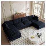 (34) 138'' Boneless Chenille L Shaped Couch, Oversized Modular Sectional 6 Seater Sofa, Modern Deep Seat Corner Cloud Compressed Couch, No Assembly Sleeper Sofa with Chaise for Living Room, Black