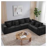(11) Modular Sectional Sofa, Convertible U Shaped Sofa with Chaise Ottoman, Deep Seat Cloud Sectional Couch, 6 Seat Comfy Modular Couch for Living Room, Office, Apartment, Black