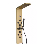 (122) HOMEMYSTIQUE Dual 6-in-One 8-Jet Shower Panel Tower System with Rainfall and Waterfall Head in Black and Gold, Massage Body Jets