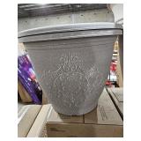Vigoro 20 in. Mirabelle Large Clay Plastic Pot (20 in. D x 17 in. H) with Drainage Hole and Attached Saucer
