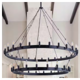 (280) 55.1 in. 48-Light Farmhouse Black 2-Tier Wagon Wheel Candle Chandelier Round Industrial Pendant Lighting