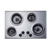 - Summit's collection of electric cooktops offers the perfect fit and finish for a variety of kitchen spaces. Sized at a traditional 29.38 in. wide, the CR430SS is a 230-Volt cooktop with four coil elements. The convenient layout puts a large 1800W burner in the front right side and rear left side, with two standard 1200-Watt elements ensuring the perfect setup to cook multiple dishes with efficiency.