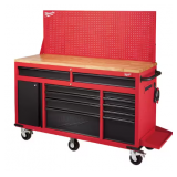 - Store your tools with this Milwaukee mobile workbench. Designed to move with you, it includes industrial casters, ball-bearing slides and a push handle. Adjustable shelves accommodate larger items and multiple drawers provide ample space for your items.