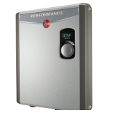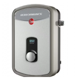 - The Rheem Performance 20 Gal. Electric Point-of-Use Water Heater has a space saving design that's ideal for installations in tight spaces and can supply a quick source of hot water for a single application.