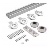 - Included: 1 track, 1 adjustable floor guide, 4 dial-adjust door hangers, 2 finger pulls, and mounting hardware