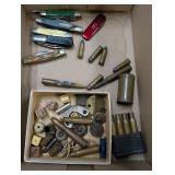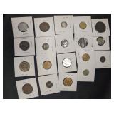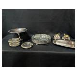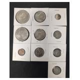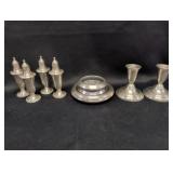 Sterling silver is represented by Duchin weighted candlesticks and Frank M. Whiting & Co. accessories. Coin lots include a 1936 Walking Liberty half dollar, Indian Head penny collection, and world coin groupings.