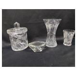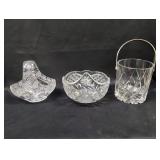 The collection spans Waterford crystal (bird figurine, shaving set, cut crystal jar), Bing & Grøndahl commemorative plates, Haviland Limoges and Narumi fine china, and 65+ additional lots of glass, pottery, and porcelain — a glass collector's dream in a single catalog.