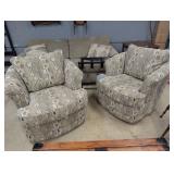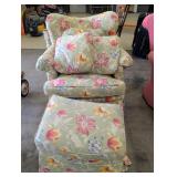Furniture includes Smith Brothers of Berne, Indiana pieces — a lounge chair and a floral armchair and ottoman with original purchase invoice. Ducks Unlimited by Kincaid tables round out the room lots.