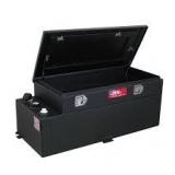 (86). RDS Aluminum Transfer Fuel Tank Toolbox Combo, 50-Gallon, Rectangular, Black Diamond Plate, Model# 74026PC