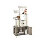 【ALL-IN-ONE PLAYGROUND】Climbing, relaxing, eating, following the call of nature, storing cat utensils - no problem! With a litter box cabinet, food bowls and several cozy places, the scratching post ensures a happy animal life 【EXTRA LARGE, EXTRA SPACIOUS】This 170cm tall cat scratching post provides a vertical playground for your climbing pros. The spacious cave and platform provide cats of different sizes with a comfortable place to relax 【SOFT, REMOVABLE CUSHIONS】Spoil your furry friend with the super soft cushions made of 500 g/m² plush. They provide a safe, non-slip surface for your cat to climb on. In addition, the cat tree's removable cushions are easy to clean
