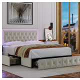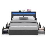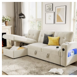 (132) ***2 Box*** Garvee 84” Sleeper Sofa Couch, Convertible Pull Out Sofa Bed with Storage, Charging, Led Light, L-Shaped Sectional Sofa for Living Room