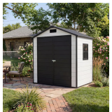 (75) ***2 Boxes*** Garvee 6x4 FT Outdoor Storage Shed with Floor Plastic Resin Garden Shed with Window and Sloping Roof and Lockable Door for Patio Backyard Garden Lawn Mower Bike Tool Storage