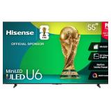 (175) Hisense 55" Class U6 Series Mini-LED 4K UHD Smart Fire TV (55U65QF, 2025 Model) - QLED, Native 144Hz, HDR10+, Dolby Vision IQ, Dolby Atmos, Game Mode Pro, ALLM, Alexa Built in, Black