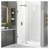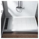 (146) WOODBRIDGE 60"L x 36"W x 4"H Shower Base,Left Drain,Non-Slip Single Threshold Shower Pan, Solid Surface with Matte Black Linear Drain Cover