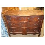 21 - Antique Tiger Oak Serpentine Chest of Drawers