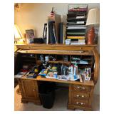 Items include washer and gas dryer by Kenmore, (2) Kenmore refrigerators, sleeper sofa, recliner, (2) wing back chairs, (2) chests of drawers, beautiful antique Hoosier cabinet (Art Deco style), roll-top desk, (2) rocking chairs, mirrors, small tables, old chairs and lamps.