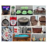 Montra Personal Property AuctionThis personal property auction features lawn equipment, jewelry, furniture, household items, and outdoor accessories from Montra, Ohio. The John Deere Z365R ZTRAK Zero Turn Lawn Mower features a 48" deck and 24.0 HP engine. Jewelry includes 14k gold rings (sizes 4.5, 6, 6.5), 10k gold ring, 14K gold cuff bracelet, 14K gold necklaces with pendants, sterling silver ring, vintage cameo brooches, and Touchstone Crystal by Swarovski pieces. Coins feature Morgan Silver Dollars (1886O, 1889, two 1921), Peace Dollars (1922 pair), Franklin-Liberty Bell Half Dollars, silver dollars from various years, Eisenhower dollars, Kennedy Half Dollars (33 total), "Bache" One Ounce Fine Silver Bar, and three 1976 Two Dollar Bills. Watches include Bulova Women's Watch with jewelry box. Furniture includes Brickwede Buffet, Drop Leaf Dining Table with 4 chairs, Cane Bottom Wood Rocking Chair, Lowry Legacy Electric Organ, Oak Coffee Table and End Table Set, LA-Z-Boy Reclining Couches and Recliners (6 pieces total including electric lift chair and electric reclining couch), Oak Kitchen Dining Table with 4 chairs, Hide-A-Bed Couch, Wooden Dresser, Full Size and Adjustable Twin Size mattress sets with bedroom furniture, Wooden Office Desk with chair, and Modern Wooden Entertainment Center. Electronics include 40" Sony Bravia XBR, Sony 55", Samsung 32", and Sony 32" Bravia Flat Screen TVs with mounts and entertainment centers. Recreation features Brunswick Buckingham Pool Table with accessories, Royal Arms Dart Board, and Pro-Form XP 580 Treadmill. Outdoor equipment features Husky 13 Gallon 5HP Air Compressor, Black & Decker Battery Powered Hedge Trimmers (18" and 22"), Leaf Blower and Weed Eater, Craftsman 16" 36cc Chainsaw with case, 75" Two-Person Crosscut Saw, Motor Guide Brute Electric Trolling Motor, Composite Porch Swing with A-Frame Stand, treated wood porch swing, outdoor furniture, and three bicycles (Bay Pointe Three Speed, Concord New Yorker, Huffy Cranbrook). Kitchen items include Fire King Jadeite Green Cups and Saucers, Pyrex Pink Stripe mixing bowls and glass dishes, Cast Iron Skillets (unmarked No.5, two No.9, 11 3/4 In), Lodge Dutch Oven, WagnerWare, Savory Enamelware Roaster, crocks, VisionWare cookware, Cuisinart Coffee Maker, KRUPS Toaster, Osterizer Blender, Hamilton Beach Mixer, and extensive kitchen utensils. Tools include Craftsman wrenches and socket sets, Black & Decker Drill, Ace Taps and Dies, TrueCraft Ratchet Set, Pro-Lift 4000lb Hydraulic Floor Jack, Olympia 6" Bench Vise, metal tool boxes, Werner ladders, aluminum adjustable ladder, metal car ramps, Milwaukee Sawzall, angle grinder, jig saw, and hand tools. Collectibles include Big Mouth Billy Bass, fish wall decor, deer mounts, bull horn mount, frog figurines and decor, vintage Coleman lanterns, Pepsi-Cola fountain syrup jugs and glass bottles, Decker's Pure Lard Can, Royal Typewriter with table, painted milk can, and Christmas decorations. Additional items include Amana Chest Freezer, Oreck XL Vacuum, Majestic Filter Queen Shop Vac, Shark Sweeper, Reddy Heater, knot tied quilt, and garage work bench. Online bidding only - Montra, Ohio Auction begins closing: Monday April 27th @ 7:00 P.M. Live preview: Monday April 27th 3:30-5:00 P.M. Pickup: Wednesday April 29th 2:00-5:00 P.M. by appointment via Shipping Saint Scheduler This auction offers value for homeowners, collectors, and bargain hunters! 1390 1394 1401 1413 1413 1416 1422 1434 1444 1481 1481 1506 1507 1536 1545 1549 1557 1563 1565 1566 |