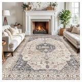 LUMI 10x14 Washable Area Rug for Living Room, Ultra Soft Traditional Rugs Non Slip with Rubber Backing, Low Profile, High Traffic, Stain Resistant Carpets, Ideal for Bedroom, Dining Room, Indoor
